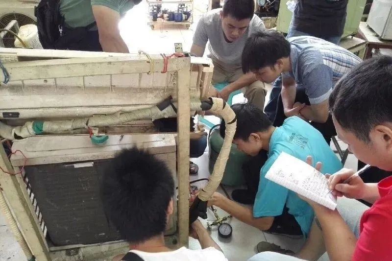 由于空調(diào)器內(nèi)有制冷劑,在維修過(guò)程中可能泄漏,泄漏的空調(diào)器制冷劑明火會(huì)生成有害氣體。因此拆裝空調(diào)器應(yīng)選擇通風(fēng)的工作場(chǎng)所,并注意做好防火。
