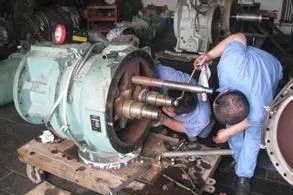 檢修后對壓縮機進行氣密性試驗和真空試驗。試驗合格后方可進行試運轉(zhuǎn)。主要檢查滑閥的動作、油泵油壓是否正常、運轉(zhuǎn)時噪聲及振動是否正常。停機后盤車應(yīng)正常。