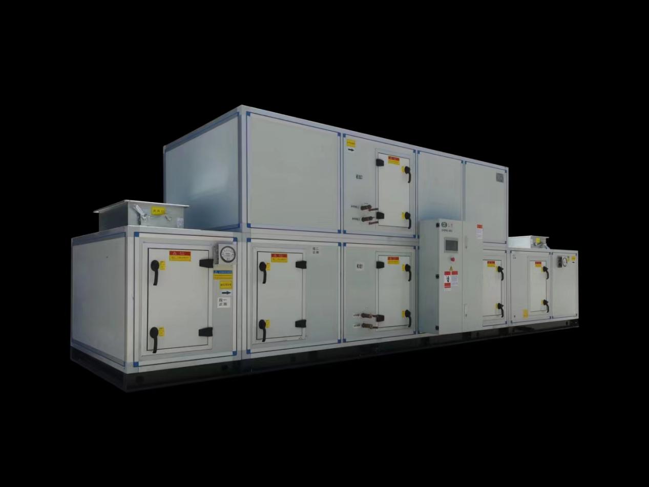 ZJRHF50直膨式組合式空調(diào)箱機組具備凈化調(diào)溫除濕、加濕;凈化升降溫除濕、加濕;凈化通風、加熱等三種功能,用戶可根據(jù)需要選擇其中任意一種功能。為了避免夏季相對濕度過大,該組合式空調(diào)箱內(nèi)設置了空氣在熱段,在室內(nèi)相對濕度過大時開啟。