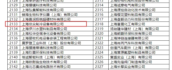 近期,上海市經濟信息化委員會公布2023年上海市專精特新中小企業(第二批)名單,非眾制冷榜上有名。公司子公司上海非眾制冷設備有限公司經審核認定為 "2023 年度第二批上海市專精特新中小企業 "非眾制冷相關政府部門的扶持與指導下,為溫濕度系統解決方案領域的研發、產品創新等方面持續發力發展。