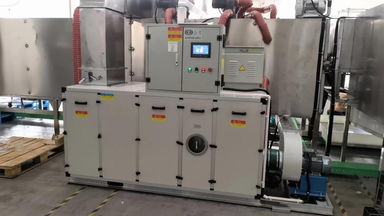 該組合式轉輪除濕機組同時能根據用戶需求進行溫度、濕度的調節,滿足各軟膠囊生產需要。亮點是防止機組運行過低濕度導致,軟膠囊過干變硬的措施,用戶在設置完參數后,機組圍繞設置參數進行運行,濕度到達用戶設定值時,機組的除濕功能進入節能待機狀態,當機組濕度超出用戶設置值時,機組除濕功能運行。可使用戶在無人的夜間也能正常運行及監控。