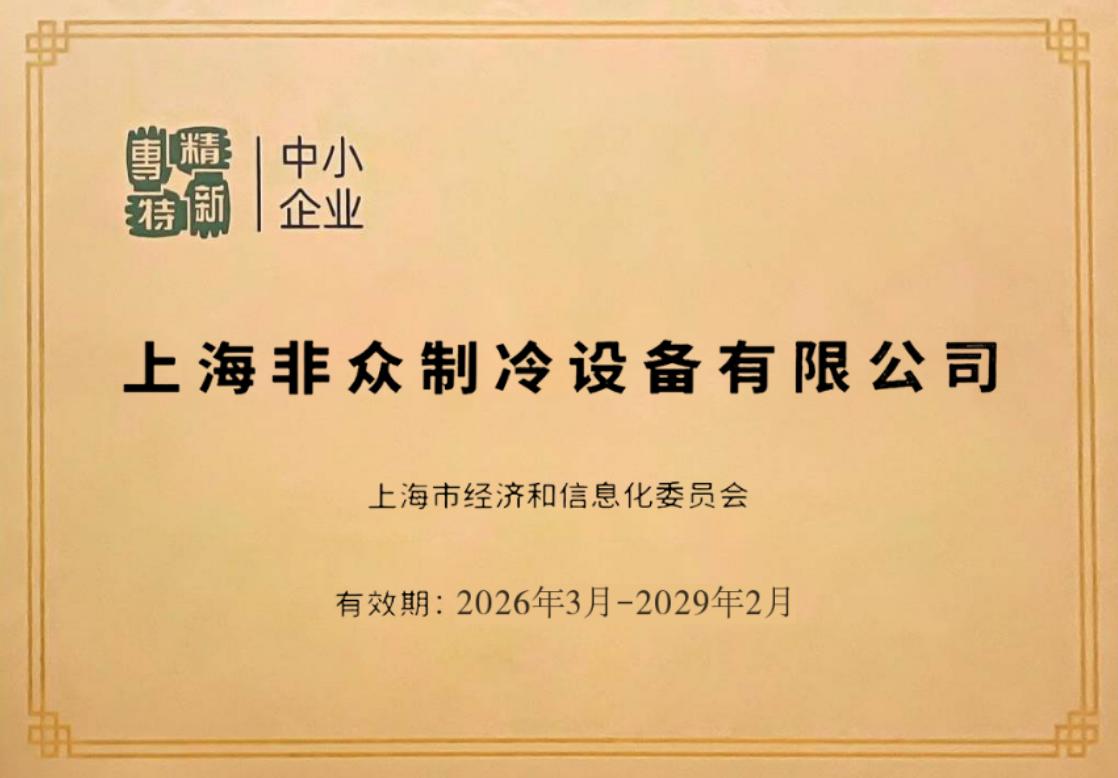 非眾制冷榮獲2026年“專精特新”稱號,堅定技術創新發展理念