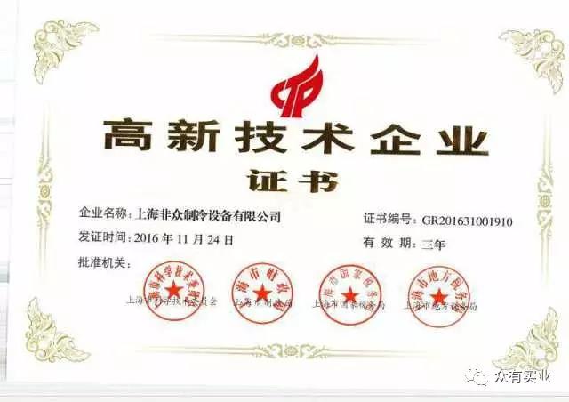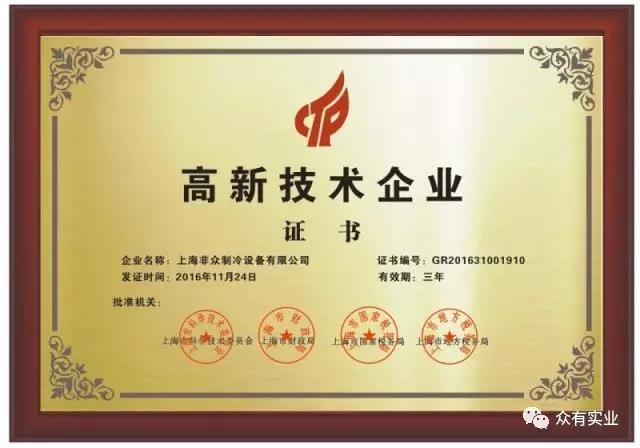 獲得高新技術(shù)企業(yè)認(rèn)證,證明了非眾制冷在本領(lǐng)域中具有較強(qiáng)的技術(shù)創(chuàng)新能力、高端技術(shù)開發(fā)能力。