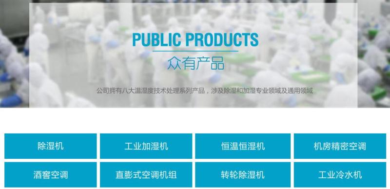 眾有秉承“貼近市場、創新奉獻精神,一直專注在該行業領域中發展,為人們提供行業領先的空氣除濕和加濕解決方案,為人們提供更舒適、更健康、更有價值的生活。我們擁有空氣處理行業經驗豐富的專業技術人員和高級工程師,可以針對每位客戶的不同需求,從方案設計、設備選型計算以及產品制造和工程服務等環節都能提供科學合理的空氣處理系統解決方案。