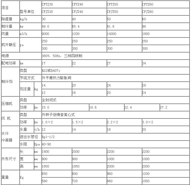 水冷調(diào)溫、降溫型常規(guī)除濕機技術(shù)指標<1>