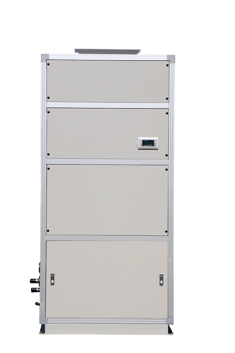 冷卻除濕設備是使冷媒通過散熱肋管與空氣進行熱交換。一般用水或鹽水做冷媒的,則叫水冷式;直接用氟里昂等制冷劑做冷媒的,稱為直接蒸發(fā)式或直膨式(即目前使用廣泛、能效比較高的冷凍除濕機,如升溫型除濕機、管道除濕機、調(diào)溫除濕機、降溫除濕機)。蒸發(fā)冷卻器與制冷機組裝成整體的,稱風冷調(diào)溫除濕機或管道除濕設備。